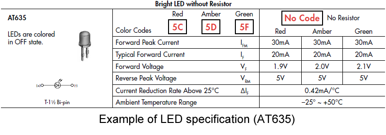 2. A ballast register or constant current diode should be used to prevent excess current in the LED.